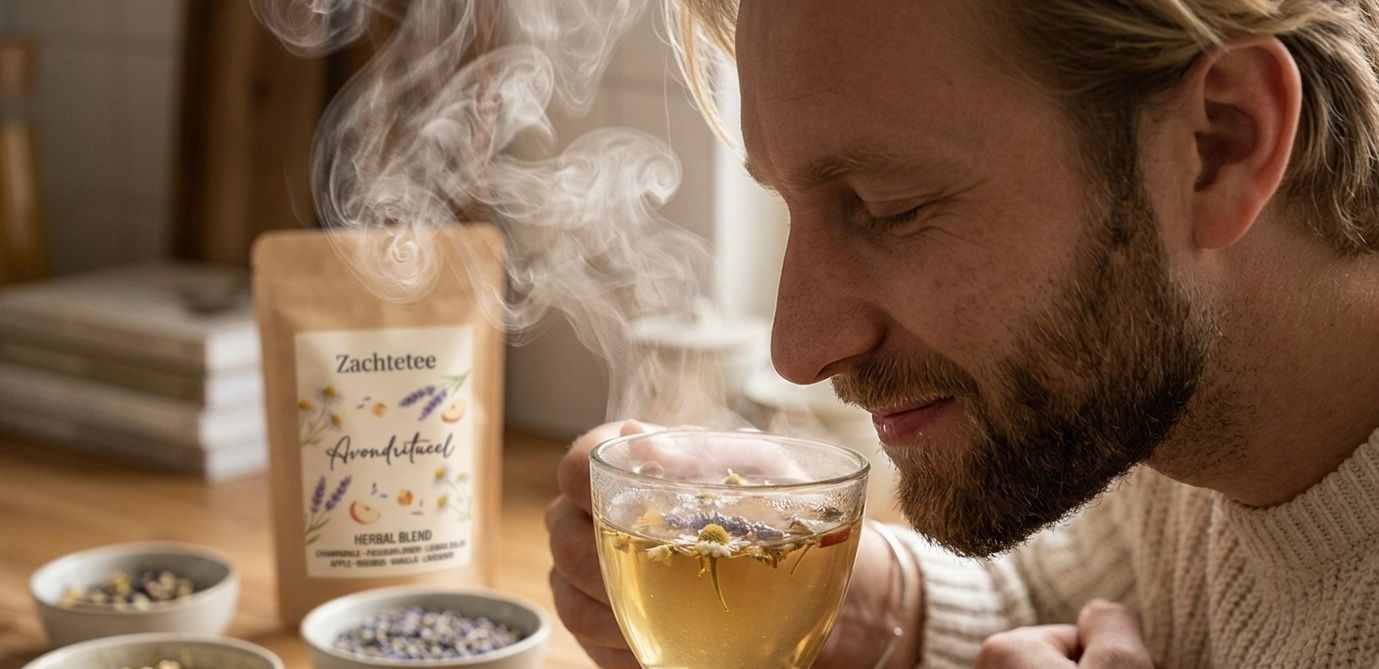 Zodra ik het kokende water over de kruiden goot, veranderde iets in de kamer. Kamille, een vleugje lavendel, de warmte van appel en vanille. Het rook naar rust.